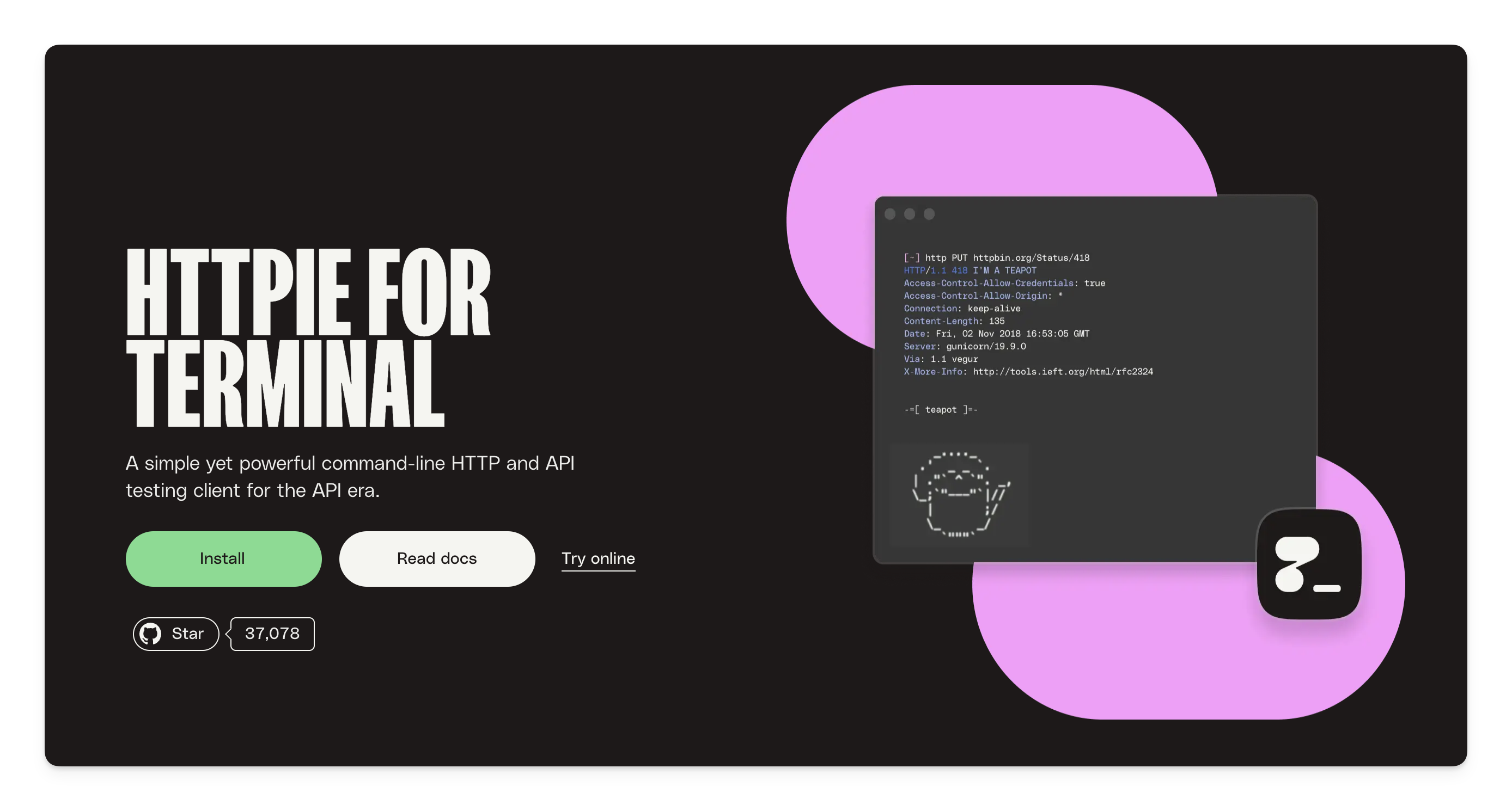 HTTPie代替curl, 前者提供更简洁的语法, 所以需要提前安装:brew install httpie; - 示例使用
